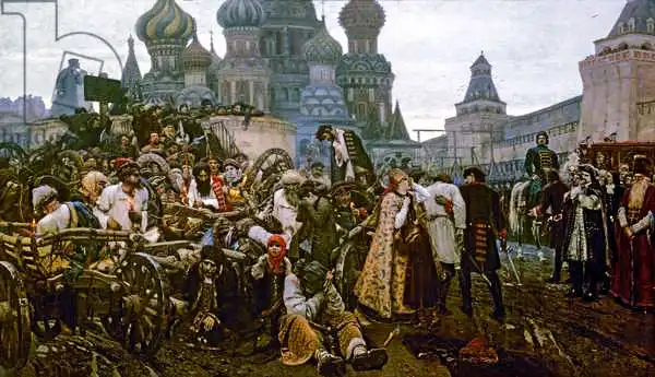 Surikov namaloval obraz Morning of the Execution of the Streltsy in 1698 v roce 1881. Převládající barvy tohoto obrazu jsou do zelena a jeho formát je podlouhlý. Rozměr originálu je 223x383.5. Umístěním originálu obrazu je Tretyakov Gallery, Moscow, Russia. Reprodukci tohoto obrazu tiskneme na přání - můžete si zvolit rozměr i provedení reprodukce.