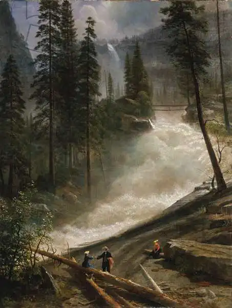 Bierstadt namaloval obraz Nevada Falls, Yosemite v roce 1872 or 1873. Převládající barvy tohoto obrazu jsou do zelena a jeho formát je na výšku. Rozměr originálu je 99.1A?76.2. Umístěním originálu obrazu je Metropolitan Museum of Art, New York, USA. Reprodukci tohoto obrazu tiskneme na přání - můžete si zvolit rozměr i provedení reprodukce.