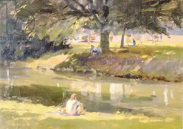 Chamberlain namaloval obraz High Summer, Castle Grounds, Hertford v roce 1988. Převládající barvy tohoto obrazu jsou do zelena a jeho formát je na šířku. Rozměr originálu je 25.4x35.5. Obraz je umístěn v soukromé sbírce. Reprodukci tohoto obrazu tiskneme na přání - můžete si zvolit rozměr i provedení reprodukce.