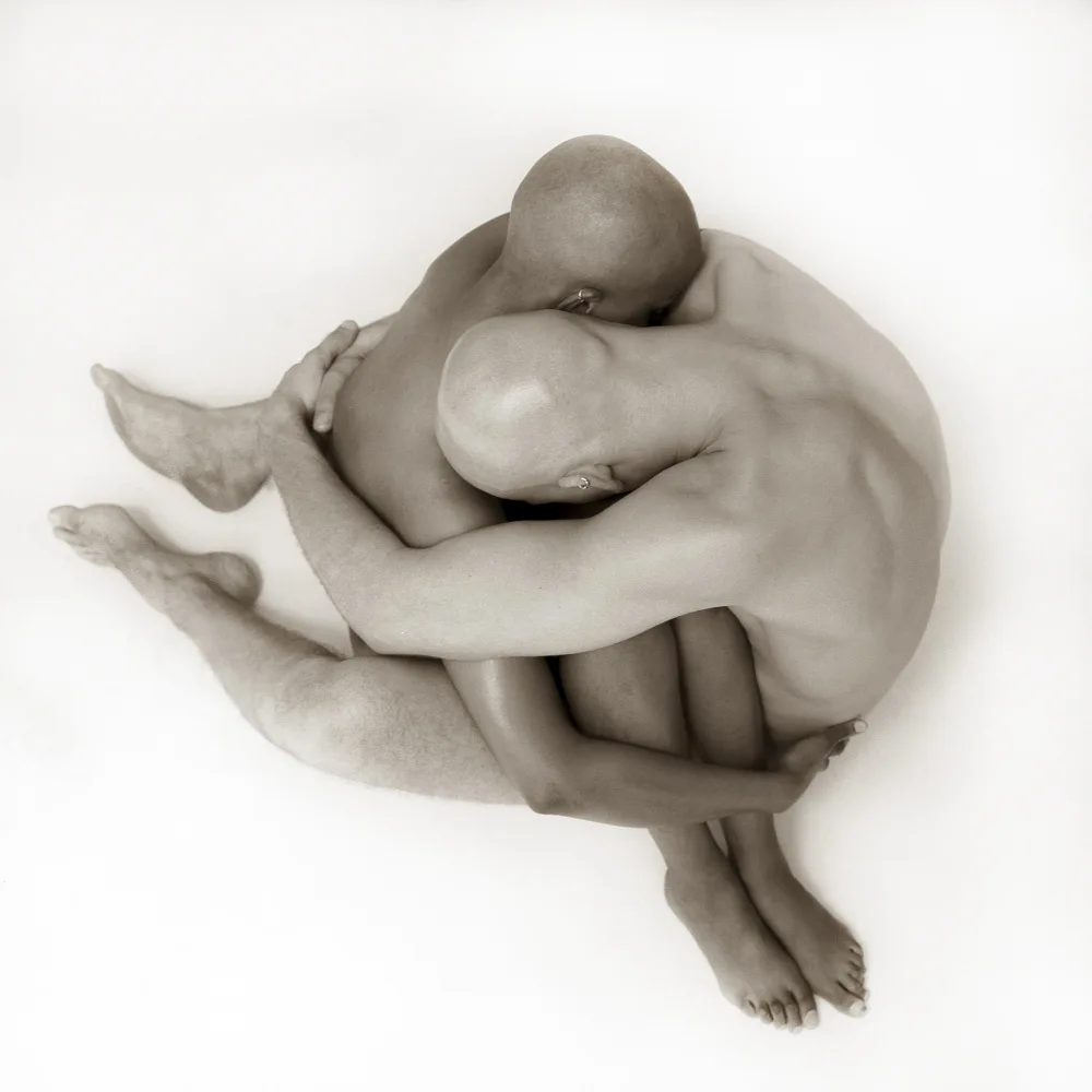 #portrét #nahý #pár #studium #objemnění #smyslné #plešitý #relax #relaxace #odpočinek #člověk #lidé #indoor #žena #muž #světlé pozadí #bílé pozadí #bez pozadí #jasné pozadí #jasné pozadí vysoký klíč #vysoký klíč #bílá #objemu #nůžka #něžnost #láska #spolu