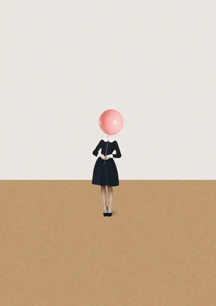 #dívka #žena #šaty #balón #balónky #hnědé #růžové #bezhlavé #ilustrace #grafika #abstraktní #surreální #člověk #anonym #límec #lidé #abstrakce #kreativní úpravy #surrealismus #surealistický #kompozitní #midreatrický seznam půl století