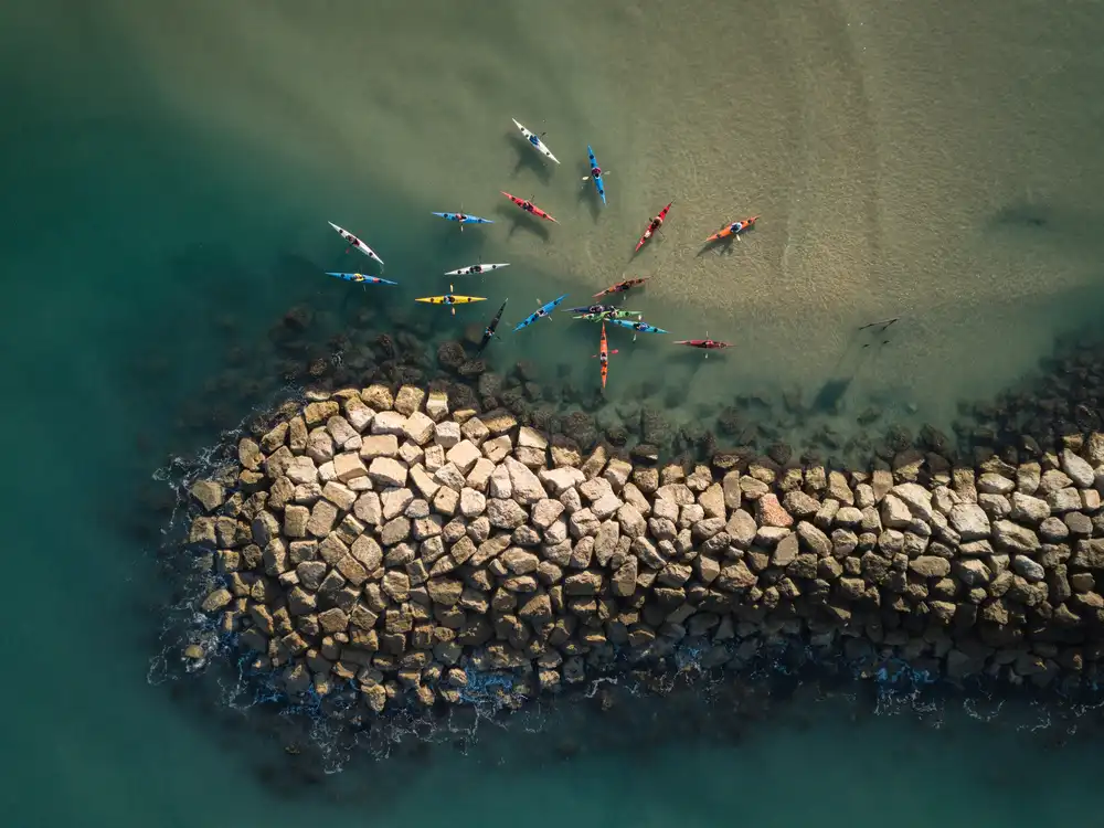 #anténa #kajak #kajaky #moře #oceán #voda #nahoře #drón #molo #most #kamen #kameny #vodolamač #sport #vodní sporty #vodní sport #pádlo #přebí #krajina #mosty #akce #břeží #mořské pobřeží #mořská krajina