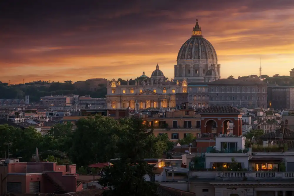 #vatikán #itálie #řím #noc #západ slunce #kupole #kostel #palác #patrac #křesťanský #katedrála