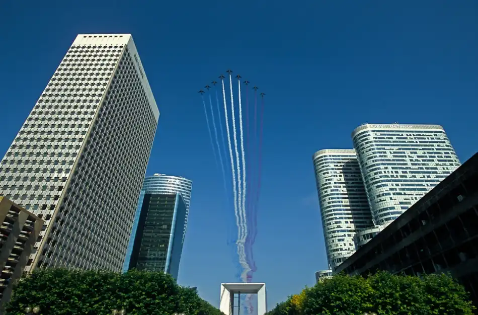 #bastille #letadlo #protáslo #stíhací stíhačka #letectví #kouř #město #show #francie #paříž #obrana #business #formace #la defense #airshow #jets #jet fighter #jet fighters #architektura #action #contrailstrails #letadla #evropa #budova #stavby #pov #perspektiva #letu #let #mluvacra #mluboxy #věže #metropolis