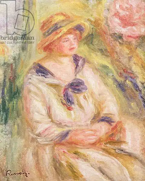 Renoir namaloval obraz Portrét ženy v roce 1910. Převládající barvy tohoto obrazu jsou do hněda a jeho formát je na výšku. Rozměr originálu je 30x25. Umístěním originálu obrazu je Musee de la Chartreuse, Douai, France. Reprodukci tohoto obrazu tiskneme na přání - můžete si zvolit rozměr i provedení reprodukce.