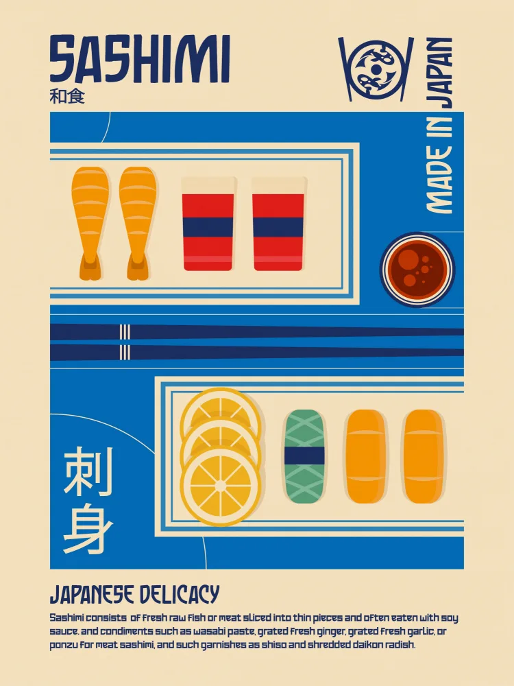 Japonský tisk potravin Sashimi