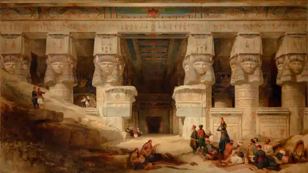 Roberts namaloval obraz Chrám Dendery, horní Egypt v roce 1841. Převládající barvy tohoto obrazu jsou do hněda a jeho formát je podlouhlý. Rozměr originálu je 119,3 x 212 cm. Umístěním originálu obrazu je Bristol Museums. Reprodukci tohoto obrazu tiskneme na přání - můžete si zvolit rozměr i provedení reprodukce.