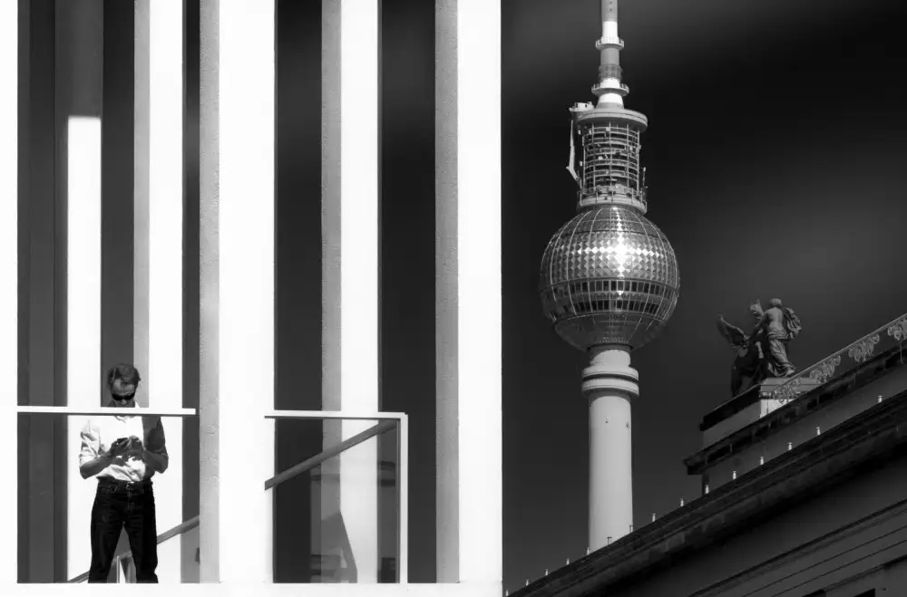 #james-simon-galerie berlín #tv-věž #muzejní nástroj #architektura #černobílý #monochromní #stavba #stavby