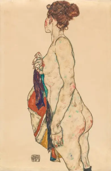 Egon Schiele (1890 – 1918). Nekonvenční vídeňský umělec představující významný milník vídeňského malířství. Rychle se rozešel s německým hnutím „nového umění“ (Jugendstil) a začal malovat svým typickým trýznivým stylem s existenciálním zaujetím pro lidské tělo. Maloval otevřeně, s odkazy na lidskou sexualitu (jeho obrazy se hodí do doby, kdy Freud formuloval své teorie). Schieleho obrazy jsou temné, agresivní, nezvyklé. Jsou však promyšlené a budicí emoce, s fascinující kresbou a kompozicí. Schiele byl mučen existencí, sexualitou a realitou života. Jeho sláva stoupala již za jeho života, který však byl velmi krátký: po první světové válce zemřela jeho manželka a dítě na tyfus a po krátké době zemřel i on sám.