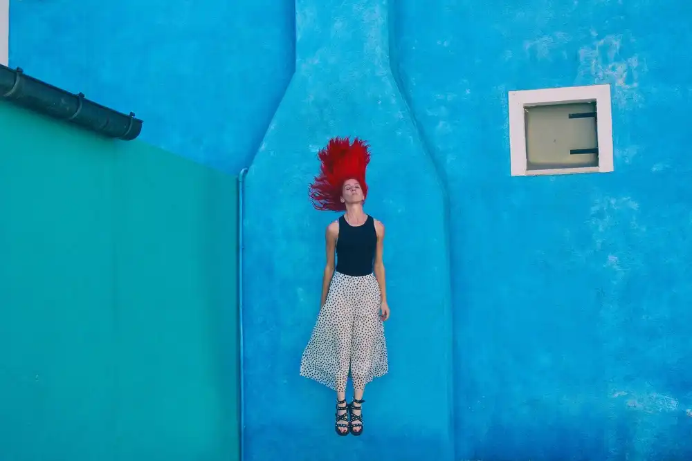 #barva #barvy #barevné #vlasy #červené vlasy #zeď #fasáda #portrét #dívka #žena #kreativní úprava #láhev #model #stavba #stavby #městské #architektura #člověk #figurativní #lidé