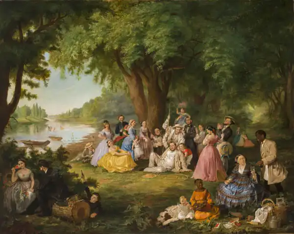 Umělec a rodina na pikniku čtvrtého července