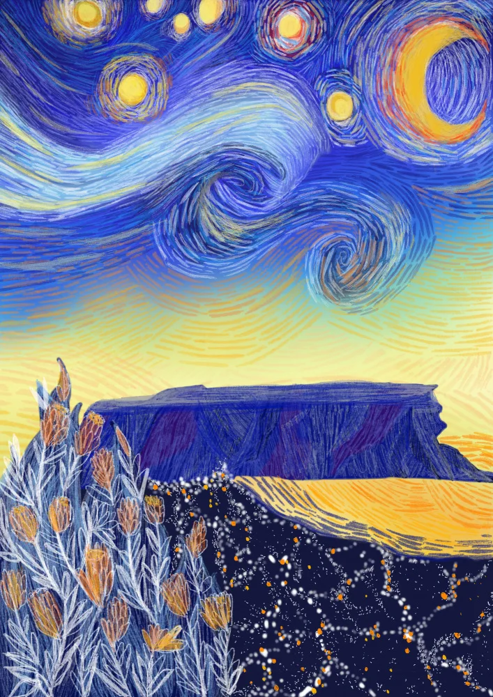 #půsměník #noc #měsíčník #měsíčním půsměním #obloha #hora #hory #krajina #květina #květiny #flora #botanická #květy a rostliny #botanicals #barva #barevné