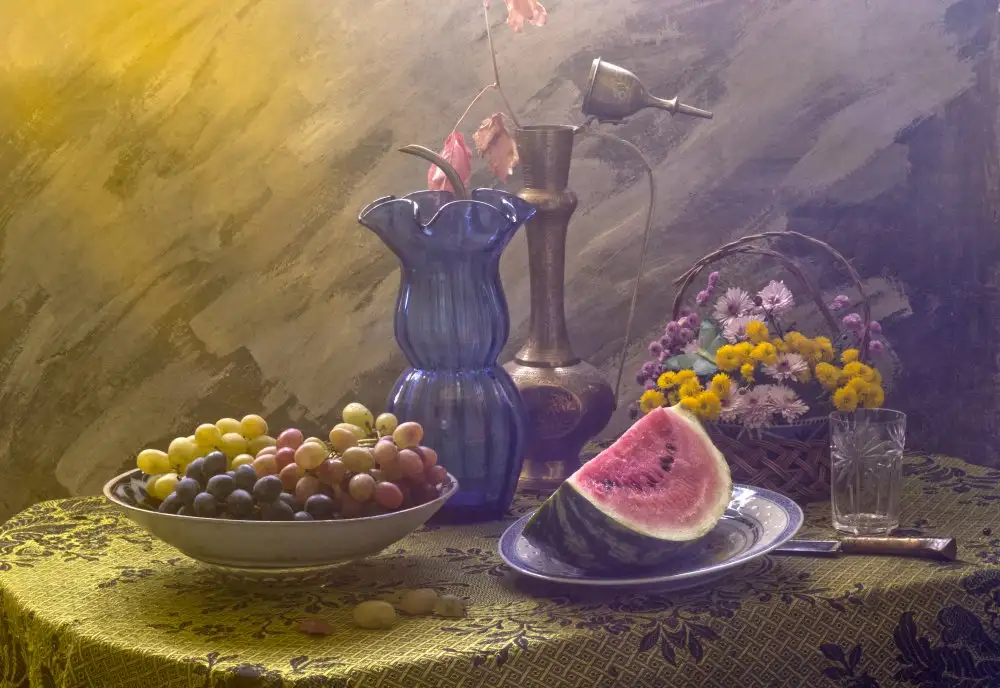 #sklo #město #okna #čáry #meloun #vasa #květy #ovoce #hrozno #květina #hrušky #nůž #jídlo #kuchyně #jídlo a nápoje #melony #košík #lampy #váza #vaše zátiší #flora #botanická #květy a rostliny #botanika #jídlo a nápoj #rostlina #rostliny #čerstvost #čerstvé #mísa #misky #vintage #retro #nostalgie