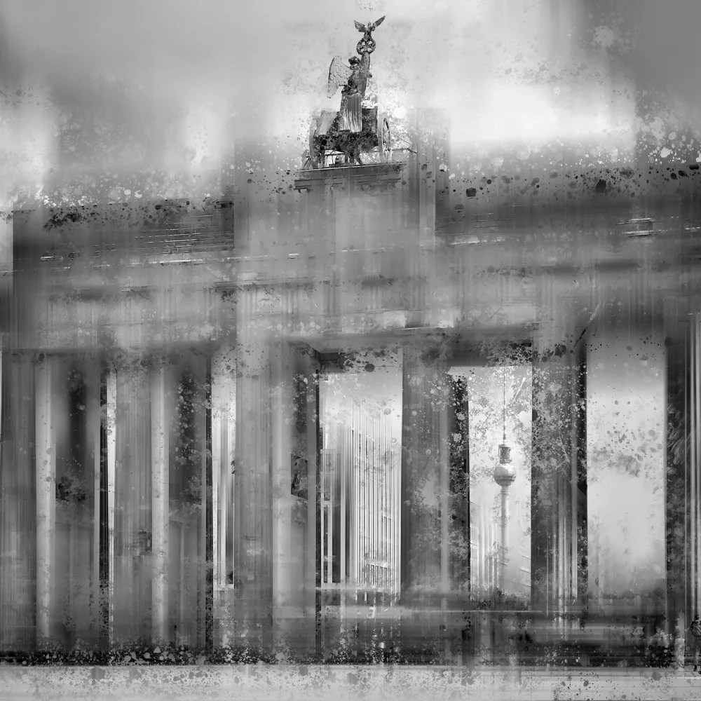 #evropa #německo #berlín #brandenburger tor #brandenburská brána #brána #pohled #landmark #budova #historická #televizní věž #věž #město #městská #dekorativní #abstrakt #umění #rozmazání #kompozace #kompozace digitální malba #experimentální #moderní umění #moderní #fotomontáž #proud #pružky #mazání #štětec #černá a bílá