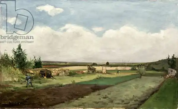 Gauguin namaloval obraz Krajina v roce 1873. Převládající barvy tohoto obrazu jsou do zelena a jeho formát je podlouhlý. Rozměr originálu je 50.5x81.5. Umístěním originálu obrazu je Fitzwilliam Museum, University of Cambridge, UK. Reprodukci tohoto obrazu tiskneme na přání - můžete si zvolit rozměr i provedení reprodukce.