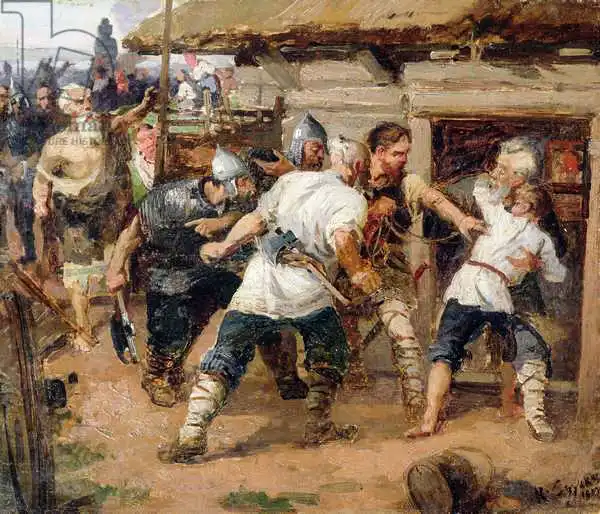 Surikov namaloval obraz Pagans killed the first Christians of Kievan Rus v roce 1884. Převládající barvy tohoto obrazu jsou do hněda a jeho formát je na šířku. Umístěním originálu obrazu je State K. Savitsky Art Museum, Pensa. Reprodukci tohoto obrazu tiskneme na přání - můžete si zvolit rozměr i provedení reprodukce.